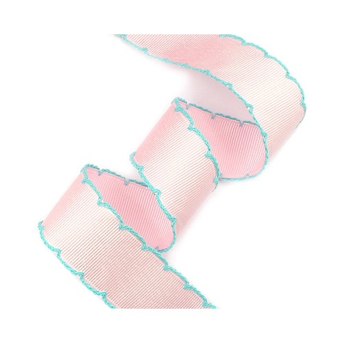 핑크색 골직리본에 옥색실 피코트리본입니다.