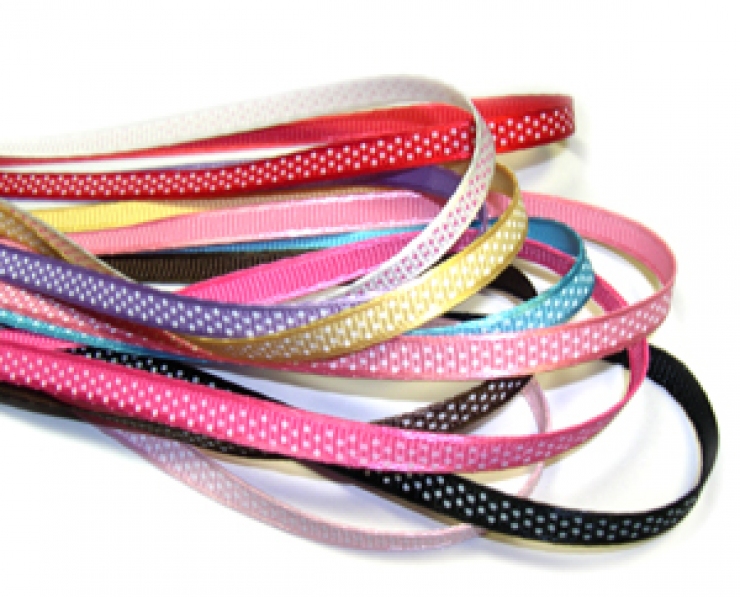 양가공단(주골직) 마무리 리본에 잔땡땡이 프린트 리본입니다.
