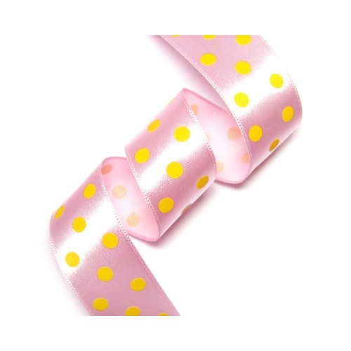 연핑크 공단에 노랑색 큰 땡땡이 프린트 리본입니다.