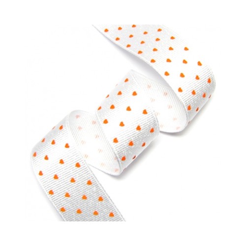 흰색 골직 리본에 오렌지색 미니하트 프린트 된 리본입니다.