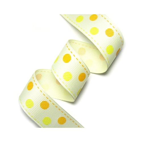 크림색 바탕리본에 투톤컬러 땡땡이 스티치 프린트 리본입니다.