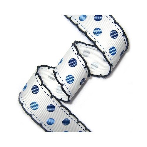 흰색바탕/파랑,곤색 투톤땡땡이 프린트리본에 곤색실 피코트 리본입니다.