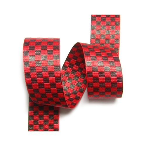 빨강색, 초록색 혼합 바둑판무의 양면주자 체크리본입니다.