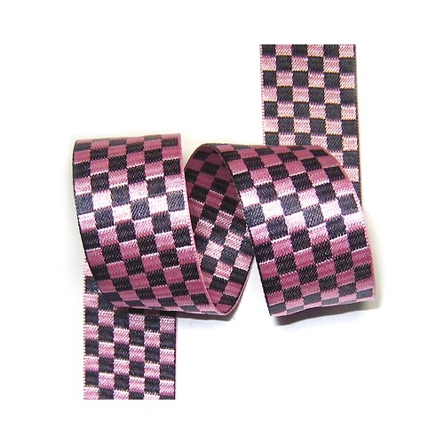 핑크, 곤색 혼합 바둑판무의 양면주자 체크리본입니다.