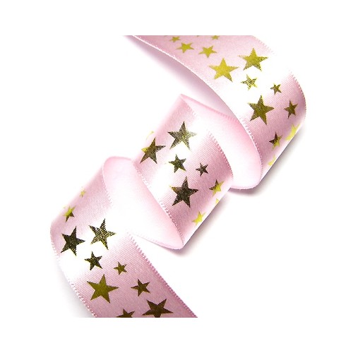 연핑크 공단에 금박 별무늬 프린트 리본입니다.