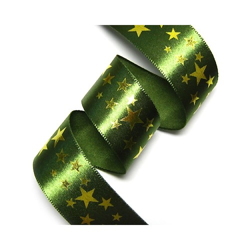 카키색 공단에 금박 별무늬 프린트 리본입니다.