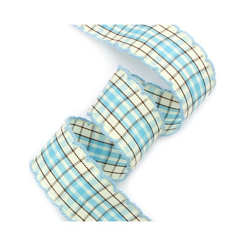 하늘색 연한체크리본에 하늘색 실 피코트리본입니다.