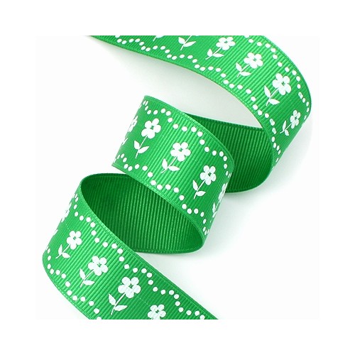 초록/흰색 물결라인꽃무늬(골직프린트) > 꽃프린트 리본