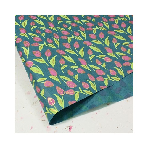 청록색/튤립(무늬한지) > 한지