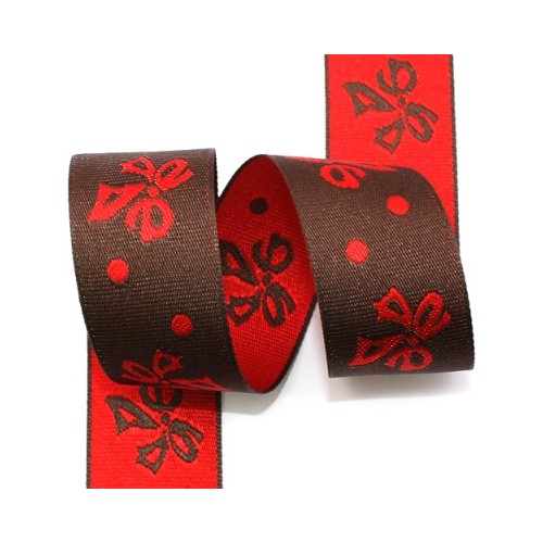 밤색/빨강 매듭리본(자카드) > 자카드
