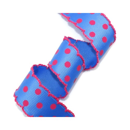 파랑/꽃체리핑크 골직 큰 땡땡이 리본에 체리핑크색실 피코트리본입니다.