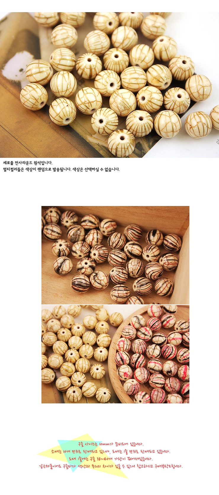 빨강/세로줄 전사라운드(원석)-10개 > 10mm 알장식