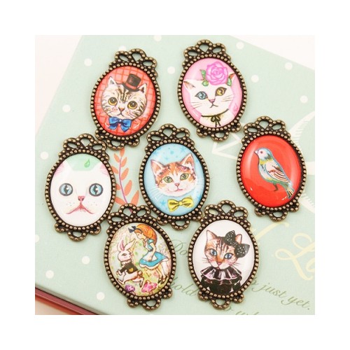 고양이 타원액자 데코/신주(금속장식) > 금속/보석/비즈장식
