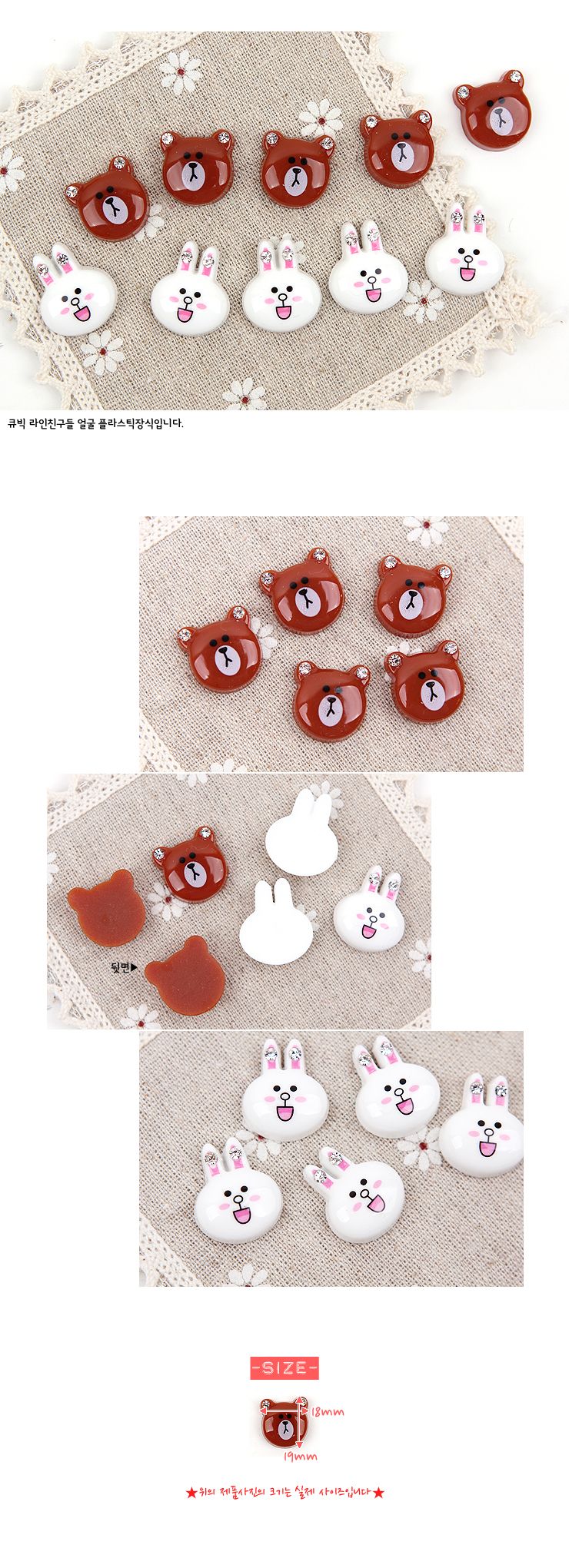 큐빅 곰친구들 얼굴(플라스틱장식)A3-4 > 플라스틱장식